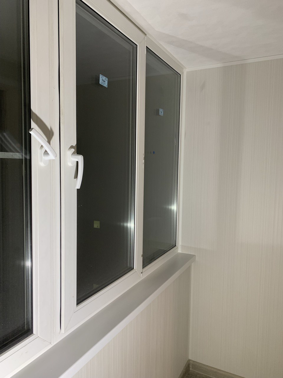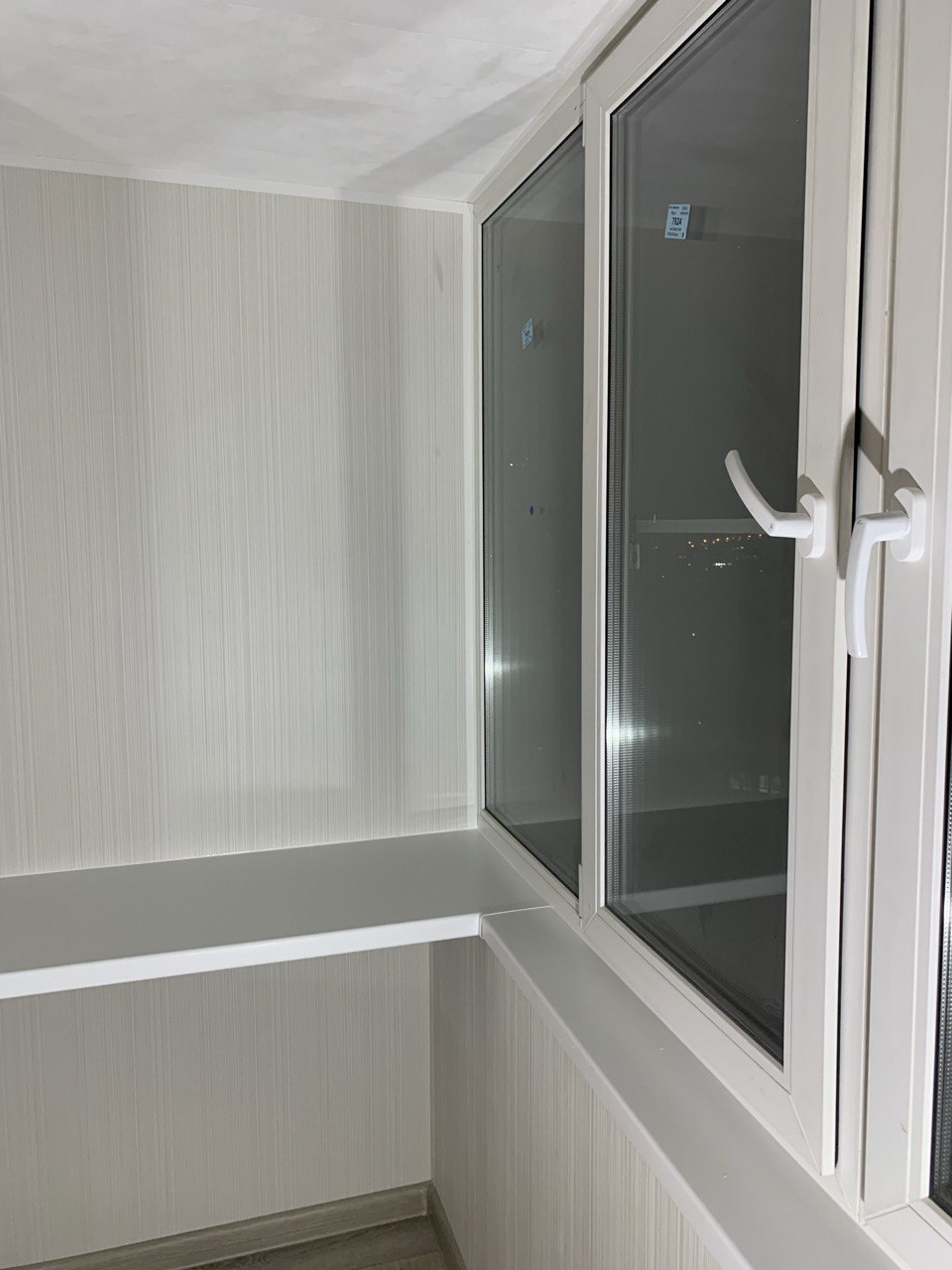 Остеклили лоджию в доме серии П-44. Выполнено теплое остекление профилем Rehau, утепление стен пеноплексом с последующей отделкой ламинированными панелями «Рипс персиковый», на пол постелили кварцвинил. Стоимость остекления 56 000 рублей, отделка с утеплением 94 000 рублей.
